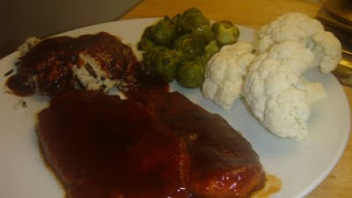 I lightly pan fried the cutlets in a little olive oil, then poured the sauce + added some broth (you could use water-the sauce is pretty thick and pungent) and simmered for about 20 min.