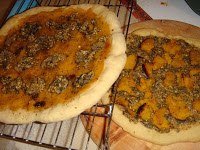 So today’s local meal is going to be pizza! Since I don’t have any tomatoes saved from summer, I’m going back to my trusty pesto that reared it’s head in last week’s spaghetti squash. Also roasting a carnival squash.