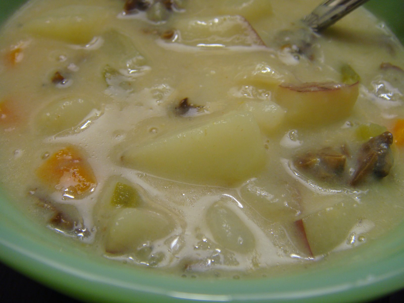 More crunkin’ goodness. Creamy potato soup with tempeh bacon.