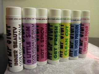 It’s cool when you find a friend on facebook you’ve known since you were three. It’s even awesomer when you discover that she’s a lip balm making goddess! Brea at My Lip Stuff offers a HUGE selection of lip balms to satisfy every lip balm addict (that would be me.) The original formula contains beeswax, but she’s also got a fantastic 100% vegan formula for all the vegan puritans. I’m smacking the “Get Fresh” right now. It’s pretty sweet. There are a few charity balms, including some stop animal testing balms. There are seasonal balms in case you need a special one to go with your Easter bonnet (it’s lavender.) Options are endless, and you can customize flavors and labels . So next time you need favors for a wedding, shower, or vegan cupcake party, you can make up your own special lip balm!