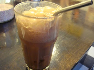 Root beer float! They use an organic root beer which is clear instead of root beer colored. Served with a cool metal straw/spoon.