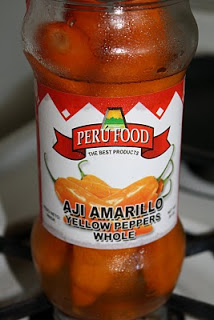 My new addition to the sofrito this time is aji peppers. I haven’t been able to find them fresh, so I finally broke down and got the jarred ones. My local grocery store has a pretty good selection of Latin American items.