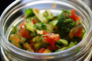 Chop all ingredients really fine or throw into a food processor. I do mine in batches in a mini food processor and mix them together. Keeps a few days in the fridge, or forever in the freezer. I save sofrito frozen in 1/2 cup portions in ziplock snack bags.