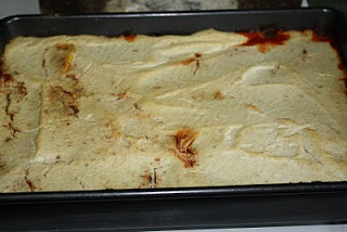 I started off planning to make some veggie lasagna so I went hunting for the pine nut cream recipe in the Veganomicon. The pine nut cream actually goes with the Eggplant-Potato Moussaka, so I switched gears and decided to make moussaka. As instructed, I tried reading the recipe aloud three times and clicking my heels, but following the recipe was almost as easy.
