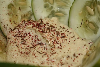 This month’s Vegetarian Times features an article on Hummus Perfection. I’ve kind of gathered that starting with dried chickpeas usually comes out better than using canned, but even then sometimes it’s better than others. The trick is to blend the chickpeas when they are STILL WARM. Who knew it was so simple. It does seem to make a difference. The hummus was super creamy and lush. I let it come down to room temp, topped it with some Zatar and enjoyed with some cucumber slices.