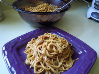 So here’s some summer udon noodles with a cold Asian peanut sauce. I used fairly even amounts of all the ingredients, but you can adjust in any combination based on what you like or have on hand.