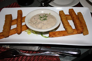Crispy chickpea fries with a spiced black cherry cream.  This sauce was delicious.