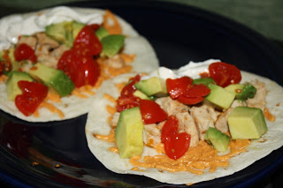 Gardein cutlets, avocado, tomato, ghost pepper, Daiya cheddar and, Vegan Gourmet sour cream.