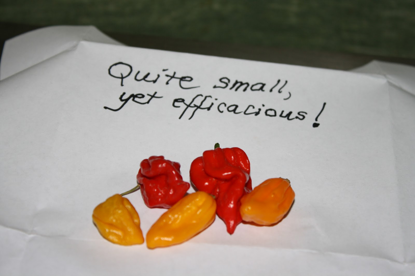 1. Yum! My partner is obsessed with ghost peppers. He talks about them ALL THE TIME and likes to watch videos of people eating them on YouTube. Sometimes, we have contests to see who can eat the most habenero pepper without taking a drink. But we've yet to try it with a ghost pepper.