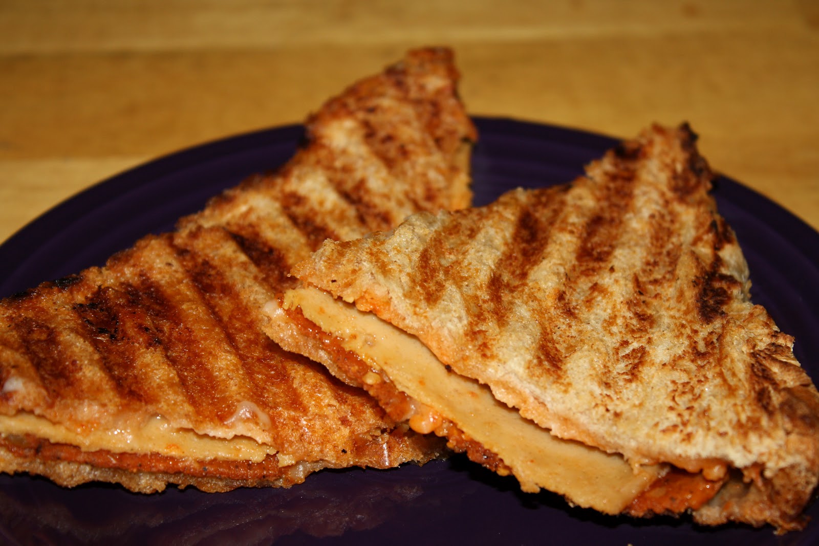 Spread the vegenaise on the bread, spread tomato sauce over that. Add a layer of cheese, turkey, pepperoni and cheese (so you have cheese net to the bread on both pieces.) Then place on preheated griddle and toast to toasty perfection. Put at an angle, then shift 90 degrees to get cool hash marks. Sometimes I spray with non-stick canola spray and sometimes I don’t, it really comes out the same.