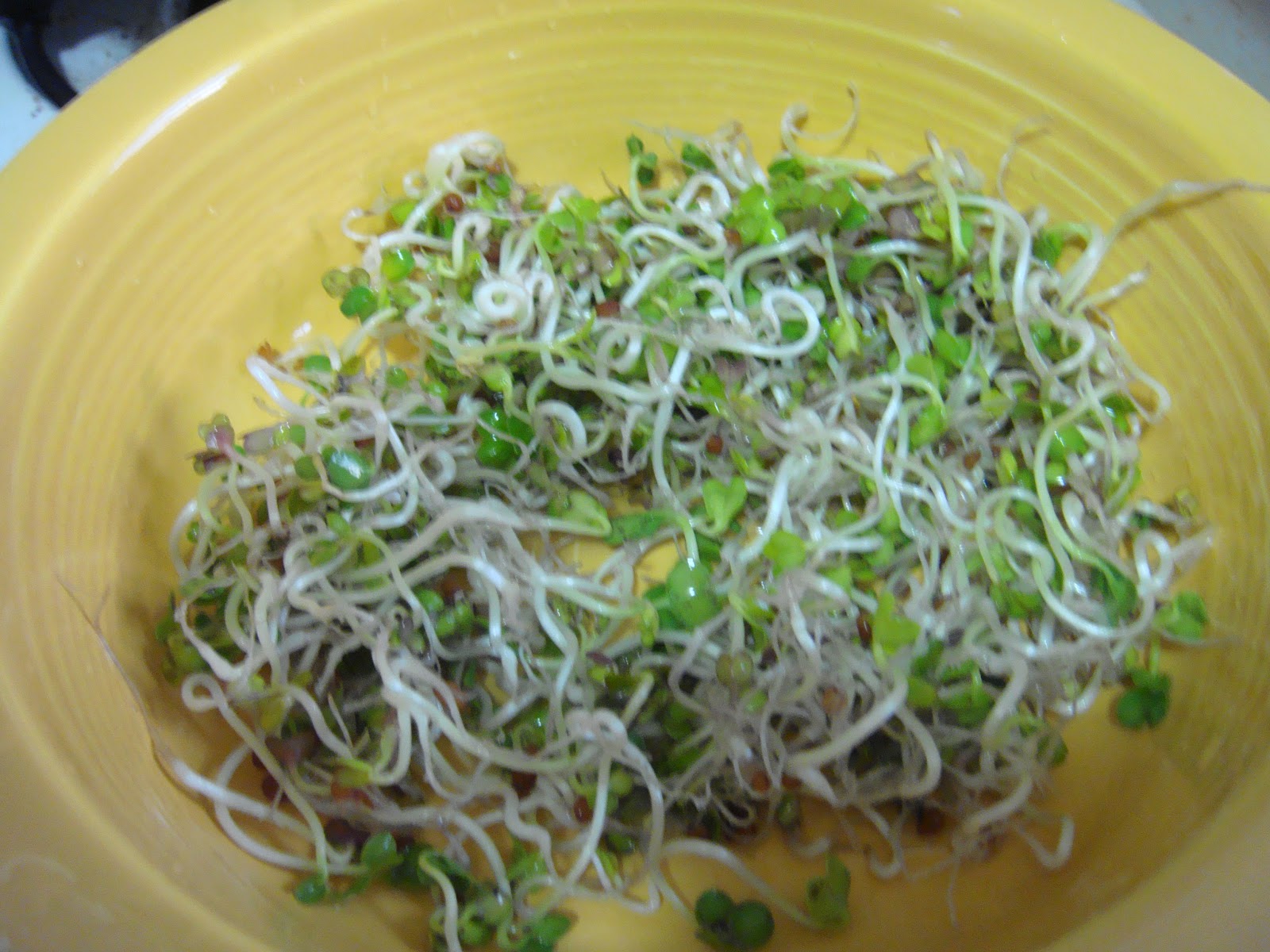 Here’s the daikon sprouts rinsed and in a bowl.