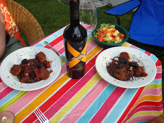 The Challenge:  Make a vegan entree using Blackberries, Fresh Mint, canned Black-Eyed Peas, and Bittersweet Chocolate