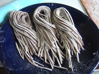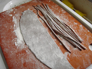 Linguini part 2.  Break off a small ball and roll as flat as possible, then slice into ribbons.