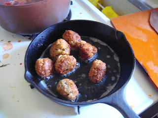 Black linguine is usually made with squid ink and used to be a big favorite of mine.  I took out the seafood element and whipped up a dark fresh pasta with meaty balls and a fresh homemade sauce.