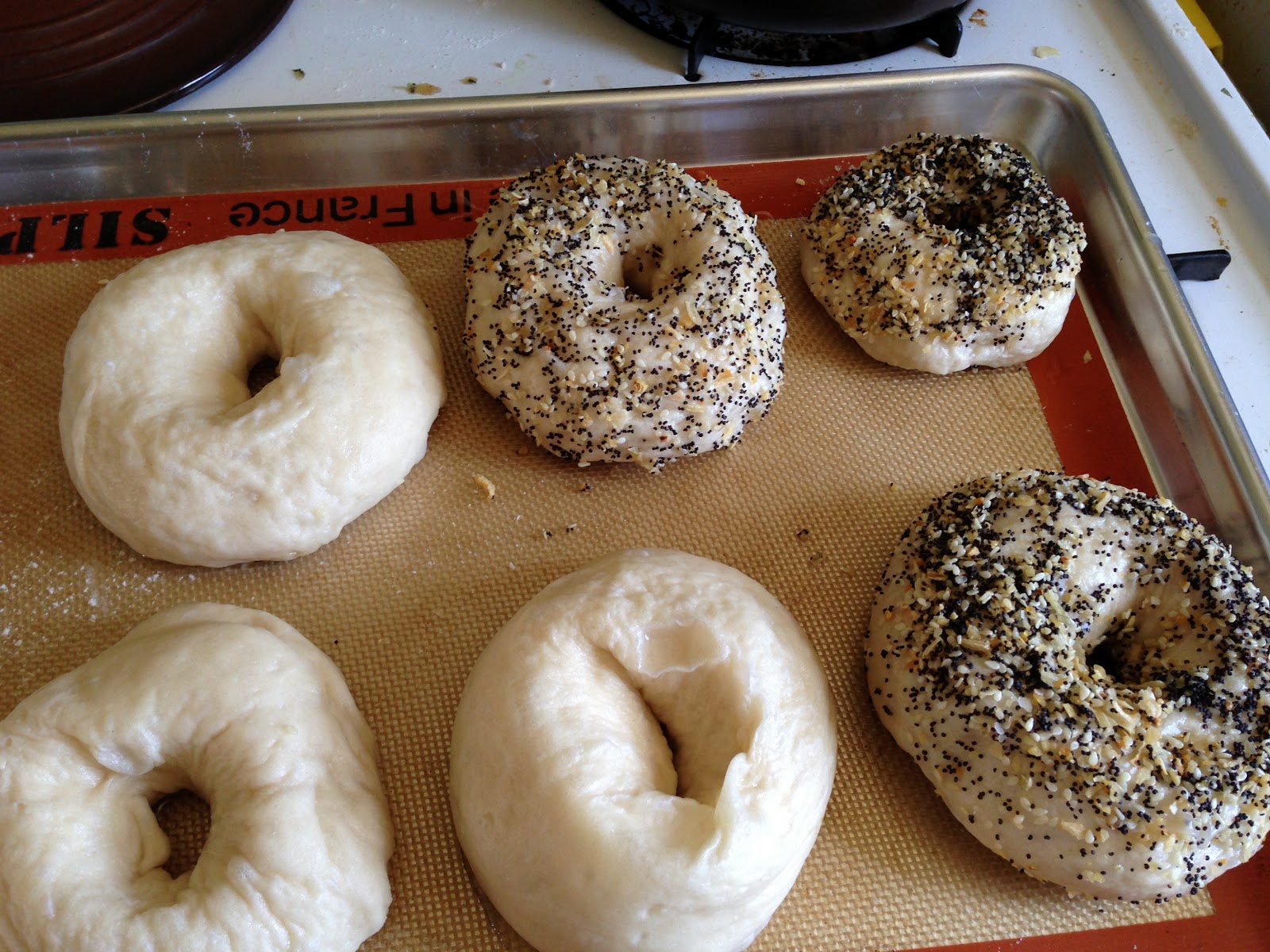 This is my 3rd round of homemade bagels in recent weeks, but I’m just getting to posting this time round. I made bagels many years ago that turned out more like flagels than bagels. I’m not entirely sure what possessed me to try again, but I’m really glad I did. King Arthur Flour makes a high gluten Sir Lancelot flour that has a great recipe on the package.