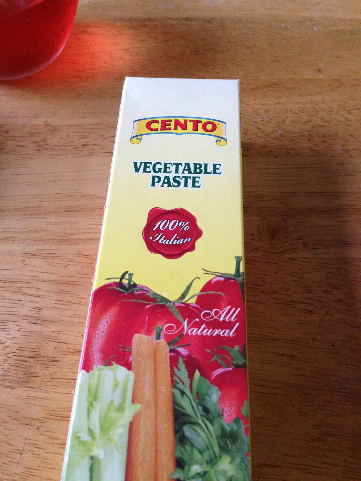 Here’s my latest secret ingredient. Vegetable paste. It’s mostly like tomato paste, but also includes assorted vegetables such as celery, carrots, onions, and parsley with a little olive oil, sugar, and salt. I found it at Chef Central in the gourmet foods section, but you may be able to find it in the normal grocery store with the Italian stuff.
