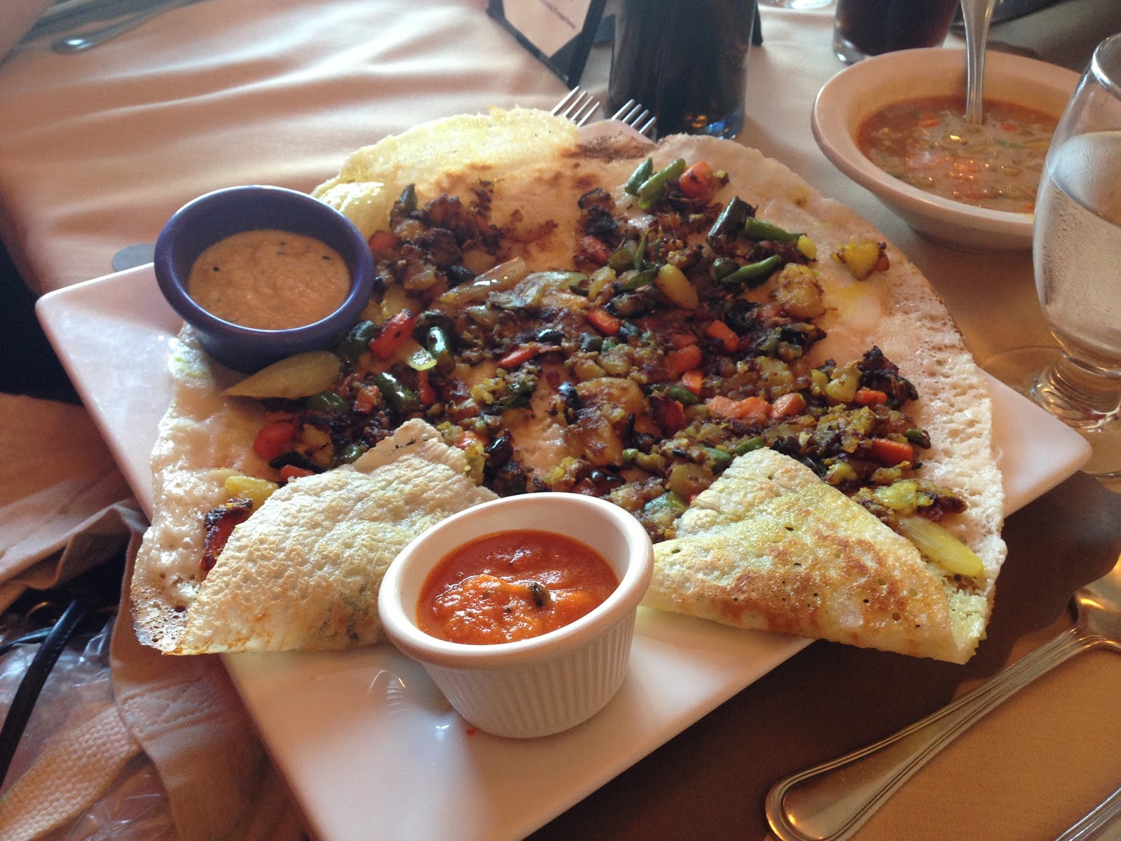the picky vegan’s entree), eggplant, vegetable dosa (served open faced) and cauliflower.