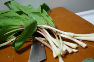 Determined to eat some actual vegetables, I stopped into Whole Foods on my way home from work. I was a little unsure what to do with the ramps, so I roasted the bottom oniony part and sauteed the greens with some red swiss chard.