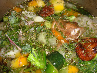 Herbs- parsley, sage, rosemary, thyme, oregano, basil, cilantro. Just keep in mind what kind of soup you plan to make. If you want a basic broth, leave out the herbs until you’re actually making the soup.